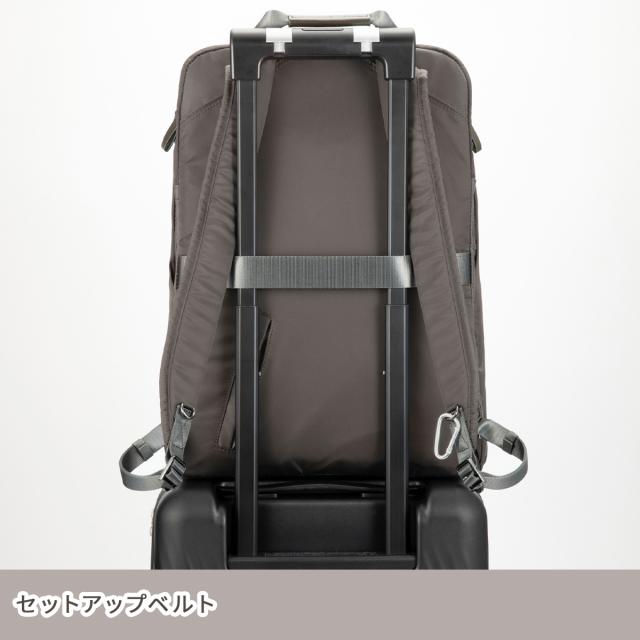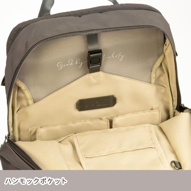 | 登降園ママのための通勤リュック「Pokkes」に25L大容量モデルが新登場! バタバタな朝の、頼れるミカタ。 マルチタスクをこなしながらの出勤でも、欲しいもの、すぐ取り出せる。 たとえば保育園の送迎、抱っこマンのこどもと保育園用の荷物。「両手がふさがっている時ささっと必要な物がとりだせたら・・・!」ポッケスシリーズは、働くママたちのリアルな声を集めて作られました。スリムな見た目のリュックに外ポケット内ポケットをふんだんに配置しているので、リュックを一度おろさなくても、すぐ使いたい荷物にアクセスできます。 お仕事リュックとしてのちゃんと見えを保ちつつ、カジュアルな服装に合わせやすいような、かっちりしすぎないシルエットにもこだわりました。オンでもオフでも持ちやすい、きれいめマルチなリュックサックです。 この25Lサイズは、定番サイズ(品番:15277)に比べてなんと8Lも容量UP!いつもの自分の荷物にプラスして、子どものお着替え2〜3着やおむつポーチも丸ごと入ってしまう嬉しい大容量サイズです!両手は子ども達のために開けておきたいので、荷物はできるだけ背負ってしまいたいと思っている登降園ママにぴったりのアイテムです。 人気の付属ポシェットも、要望にお応えして少し大きめなサイズでお作りしました。ちょっとしたマチもあり、ペットボトルを挿しておくことも可能です。 【サイズ】 B4サイズのファイルや15.6インチPCが収納可能。大型PCを持ち歩く方や、荷物が多く大きいバッグをお探しの方におすすめです。 ※B4ファイルサイズ:W38×H27cm ※PCサイズ:W38.5×H26.5×D2.7cm で計測 【機能】 「これ、簡単に取り出せたら・・・」へのこだわり。 通勤ママたちへのヒアリングから生まれた「あったら助かる」ポケットの数々。リアルな場面での些細なお困り事にまで、ひとつひとつ向き合いました。 こだわり機能 ★付属のちょい掛けポシェット 貴重品を分けて身に着けておける便利なポシェット。車から貴重品だけを持って降りたいときや、公園などでも大活躍。大きめのサイズが欲しい!の声にお応えして、ペットボトルもちょっと挿しておけるような、少し大きめのサイズ感でおつくりしました。 ★ポケットティッシュ専用ポケット すぐに取り出せるようポケットティッシュを入れられるポケットをつけました。旧バージョンよりもポケットサイズが大きくなり、より使いやすくアップデート。ティッシュの向こう側にはビニール素材でお手入れ可能な簡易ゴミスペースとマルチポケット付き。 ★ボトルホルダー ポリ袋をセッティングできるスナップが追加。ボトルホルダーとしてだけでなく、簡易的なごみ箱としてもお使いいただけます。 ★ハンモックポケット リュック上部のデッドスペースを活用したシースルーポケット。トップのファスナーからアクセスできて、荷物の出し入れもスムーズです。付属のポシェットがすっぽり収まるサイズです。 ★フロントファスナーポケット フロントポケットの内側にはポケットが3つ。社員証や保育園のセキュリティIDカードの定位置にしておけば、焦らずに取り出せます。 ★Napping pl.×1 スマートフォンなど頻繁に出し入れする小物を入れておける収納スペース。裏生地には柔らかいスエード素材を使用。リュックを背負ったままでも取り出せるよう、背面に設置しました。 ★セキュリティフック 前ポケットの引手にはセキュリティフックをつけました。 自転車で後ろに乗せたお子さんがうっかり開けてしまうのを防ぎます。 ・PCスリーブ 15.6インチPCが収納可能な別気室の収納スペースは端子の穴を塞ぐフラップ付きで、雨の日も安心。フラップにはUSBメモリやモバイルwifiなどの周辺アクセサリを収納できるポケットも! ・Me Strap×1 鍵やパスケースなどの小物をフックで繋げておけるキーストラップ。バッグの中のDカンに取り付けてお使いいただけます。 ・マチ付きポケット×2 ・ペンホルダー×1 ・ファスナーポケット(外側)×1 片手でも開けやすい縦向きファスナー仕様。電車やバスなどでリュックを前持ちした時に便利な位置に配置しました。 ・サイドポケット×2 ペットボトルや折り畳み傘を収納可能。深めにデザインされているのでドリンクボトルを入れていても「遠足っぽさ」を感じさせません。 ・セットアップベルト キャリーケースやスーツケースの伸縮ハンドルにセットアップ可能。旅行や出張でも活躍します。 ・ハーネスホルダー ショルダーベルトの長さを調整したときも、余ったベルトがプラプラしないデザインになっています。 【素材】 軽い撥水加工が施された光沢感のあるナイロンツイル素材を使用。 ※完全防水ではございませんので、ご注意ください。 【カラー】 定番のブラックと、肌馴染みがよくお仕事スタイルにも合わせやすいニュアンスカラーでのおつくりです。 |