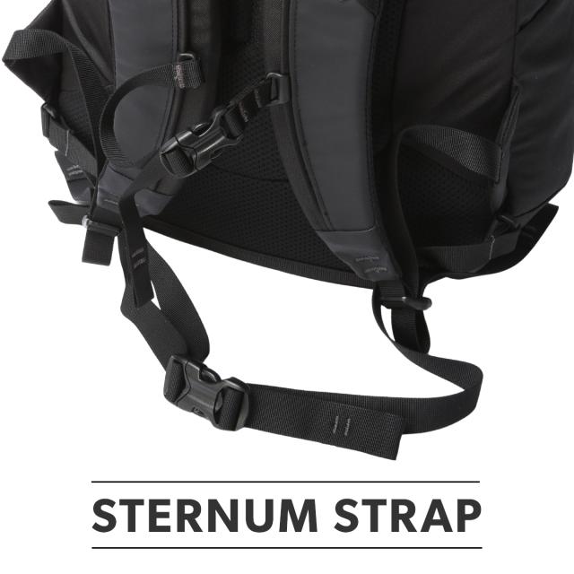 パッド入りショルダーハーネスには位置調節が可能なスターナムストラップ付き。