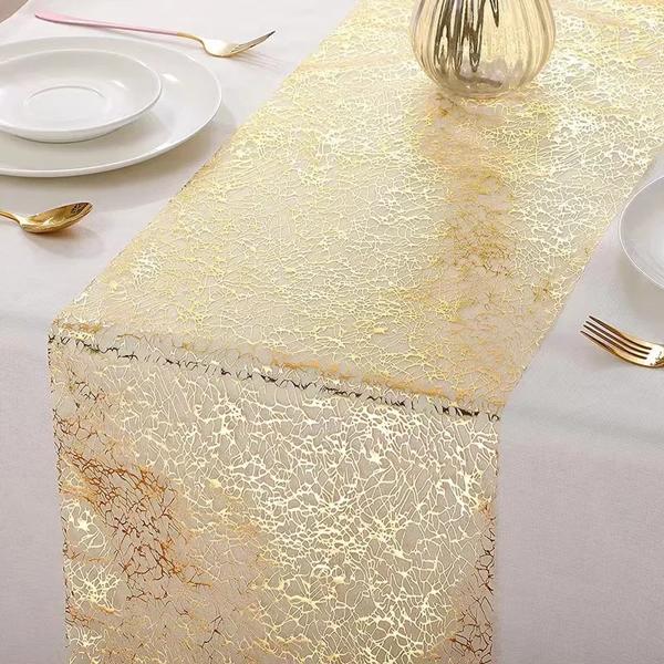 グリッターメタリックテーブルランナー、ポリエステルゴールド/ローズゴールドテーブルランナーロールダイニングテーブル装飾パーティー誕生日結婚式用