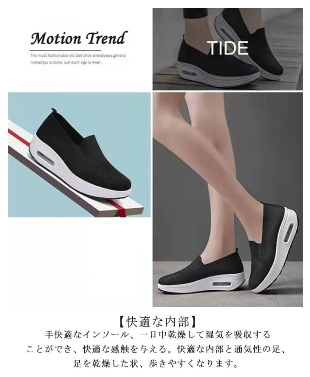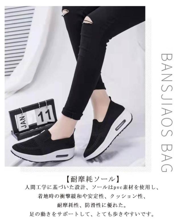 | 【上質なアッパー】アッパーは通気性の良いニット生地を採用し、蒸れが軽く、爽やかな履き心地を実現、長い時間履いても快適です。足元の負担軽減だし、耐久性、通気性に優れております。【耐摩耗ソール】人間工学に基づいた設計、ソールはpvc素材を使用し、着地時の衝撃緩和や安定性、クッション性、耐摩耗性、防滑性に優れた。足の動きをサポートして、とても歩きやすいです。 【船型靴底】船型底シューズとして、身体重心を転移させて、すねを引き締めて、上腿脂肪を燃やして、尻を高めて、腹部を美しカラダ。通常より2-3センチ見えます。歩くだけで全身の筋肉が活性され、基礎代謝の向上、血液の循環がよくなり、カロリー消費量の増加により、ダイエット効果があります。 【快適な内部】手快適なインソール、一日中乾燥して湿気を吸収することができ、快適な感触を与える。快適な内部と通気性の足、足を乾燥した状、歩きやすくなります。 【幅広い用途】散歩や買い物などで、スーパーやショッピングモールへお出かけの際に、着用されることが最適です。ナースなど立ち時間が長い仕事をする人もおすすめです。健康・ダイエット・ジョギングをする方にもオススメのシューズです。普段履き、ウォーキングからランニングまで幅広い用途に応えるスニーカーです。 | |