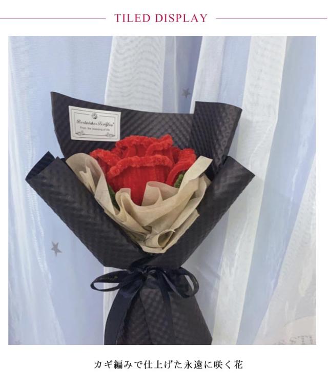 手編み ローズブーケ ローズ 母の日 造花 カギ編み 完成品 退職祝い かぎ針編み 花束 バラの花束 永生花 フラワー ブーケ ニットブーケ 完成品 プレゼント ギフト バレンタインデー 薔薇 結婚祝い 誕生日 記念日