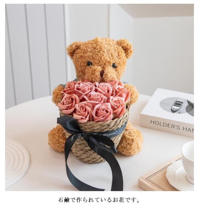 くま ぬいぐるみ かわいい ソープフラワー ブーケ 友だち バラ クマさん ローズブーケ ローズ 花束 花 バラ花束 造花 リボン付き 彼女 ギフト プレゼント 結婚祝い 誕生日 女友達 母親 プロポーズ 女性 20代 二十歳 ぬいぐるみ 退職 卒業 枯れない花 クリスマス