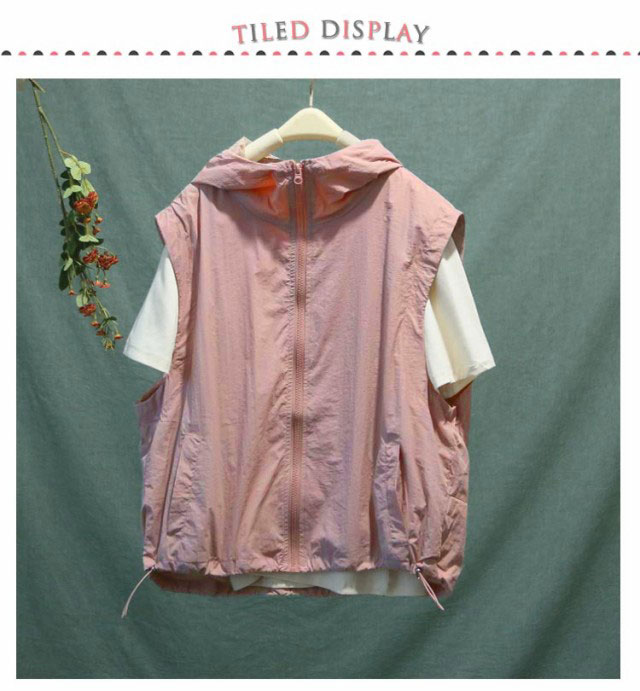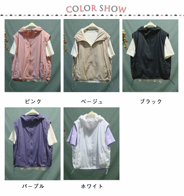 ひんやり 前開き 薄手 ベスト ノースリーブ フード付き パーカー レイヤード アウター 重ね着 涼しい ジャケット ライトアウター 無地 羽織り トップス 春 夏 前開き 着回し 大人 レディース 軽量 通気 速乾 お釣り 撮影 登山服
