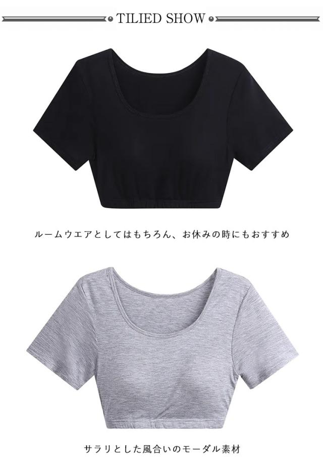 | ゆったりとしたカップ付き半袖Tシャツです。 サラリとした風合いのモーダル素材 ルームウエアとしてはもちろん、お休みの時にもおすすめ | |