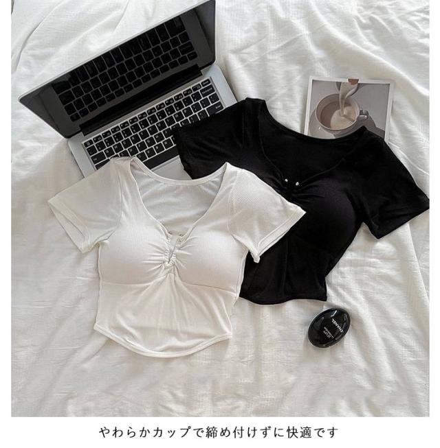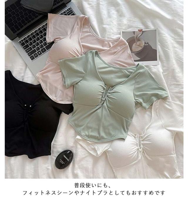 半袖インナー 伸縮性 カットソー ブラトップ ブラトップ Tシャツ カップ付き Tシャツブラ トップス 下着 カップ付き レディース パッド付 無地 速乾 ストレッチ 通気性 締め付けない 肌着 ルームウエア ジムウエア ヨガウエア 部屋着