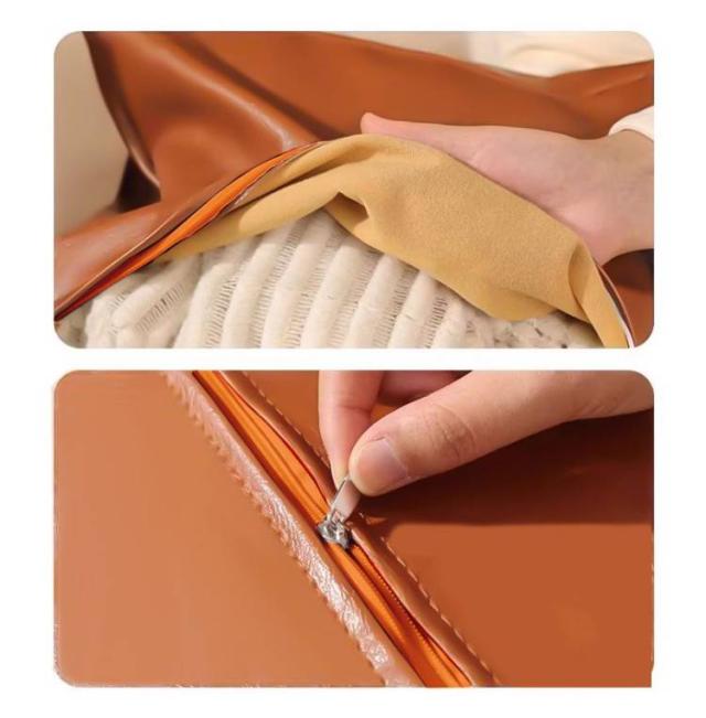 | タオルやブランケットを入れてクッションになる一石二鳥の収納ケース。 収納後にクッションとして使用できるので、かさ張って置き場所に困るオフシーズンのブランケットやタオルケットの置き場所に困りません。 クッションとして使用することで、押入れスペースを他の収納に使うことができます。 柔らかい上質なPUレザーを採用し、撥水加工で汚れが付きにくく、濡れたタオルで拭くだけ。 | |