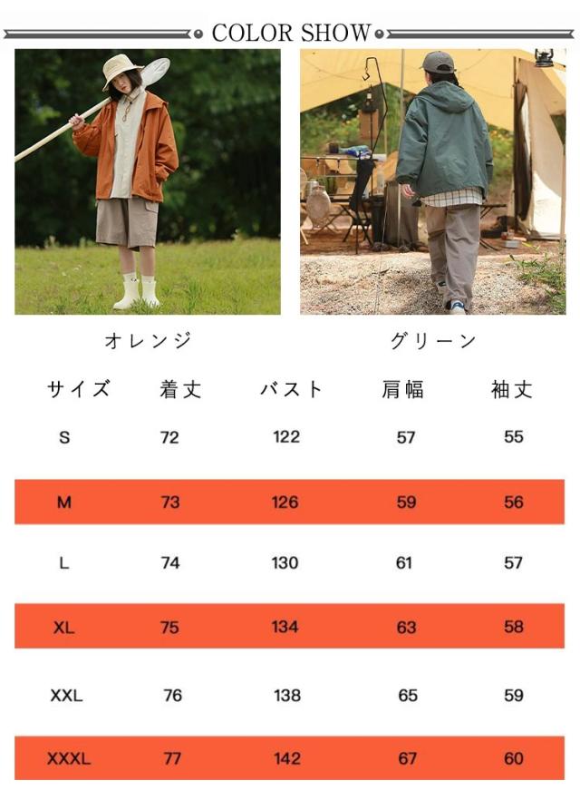 パーカー パーカージャケット 薄手 薄手 お尻が隠れる 長袖 防風 ライトアウター 長め アウター ジャケット ブルゾン フード付き マウンテンパーカー カジュアル ゆったり 体型カバー オーバーサイズ 大人 マウンテンパーカー オレンジ グリーン