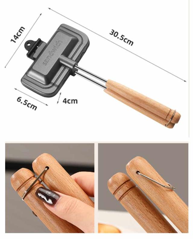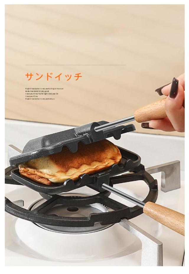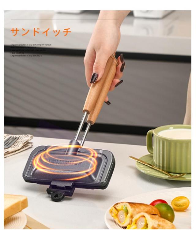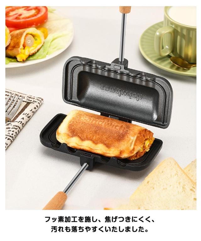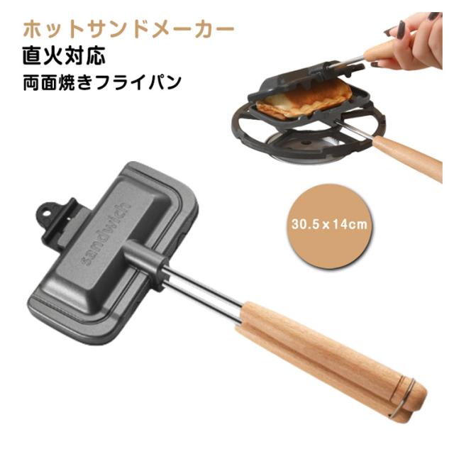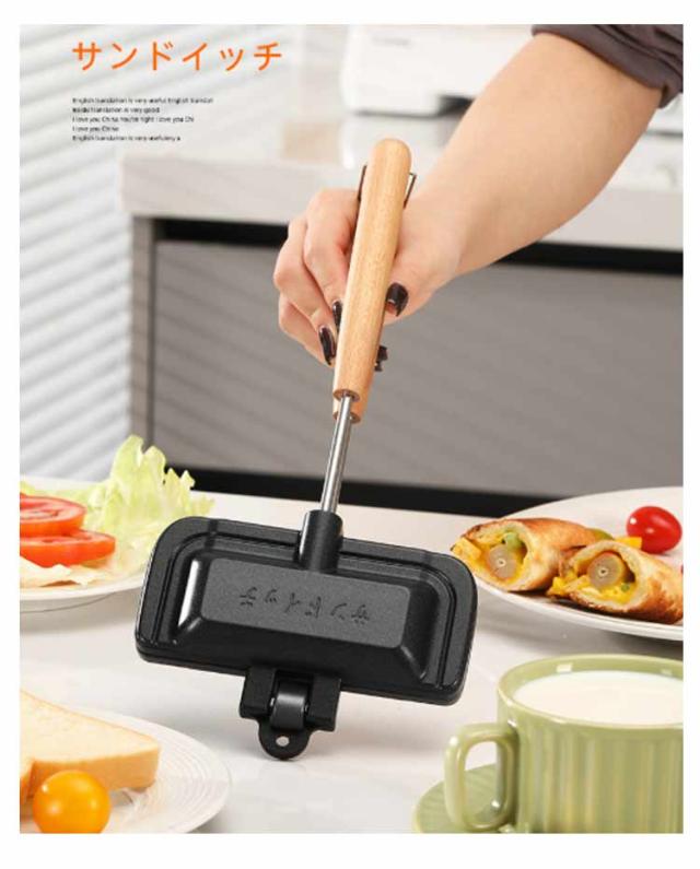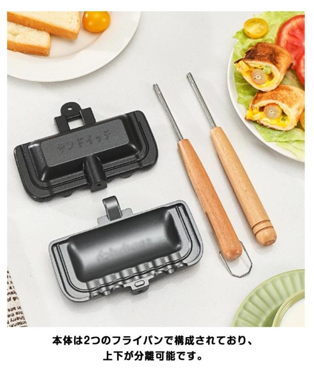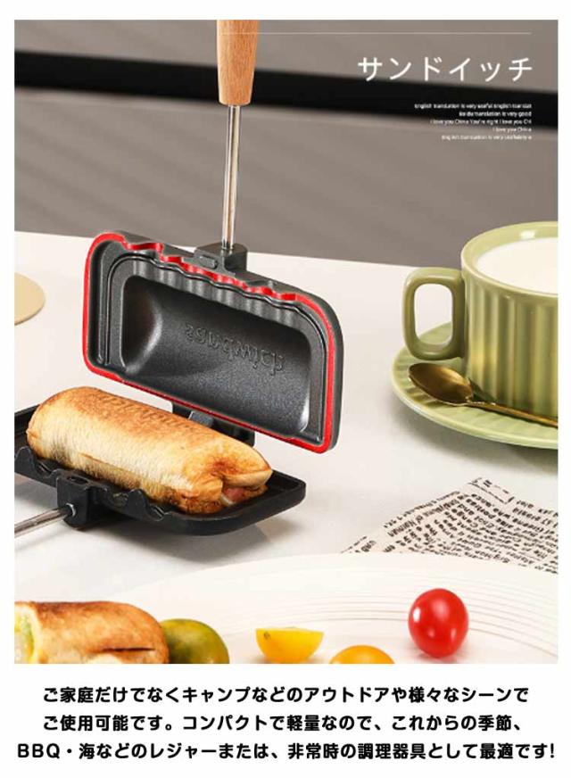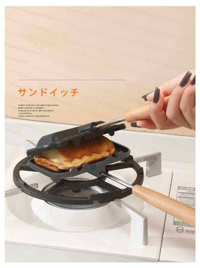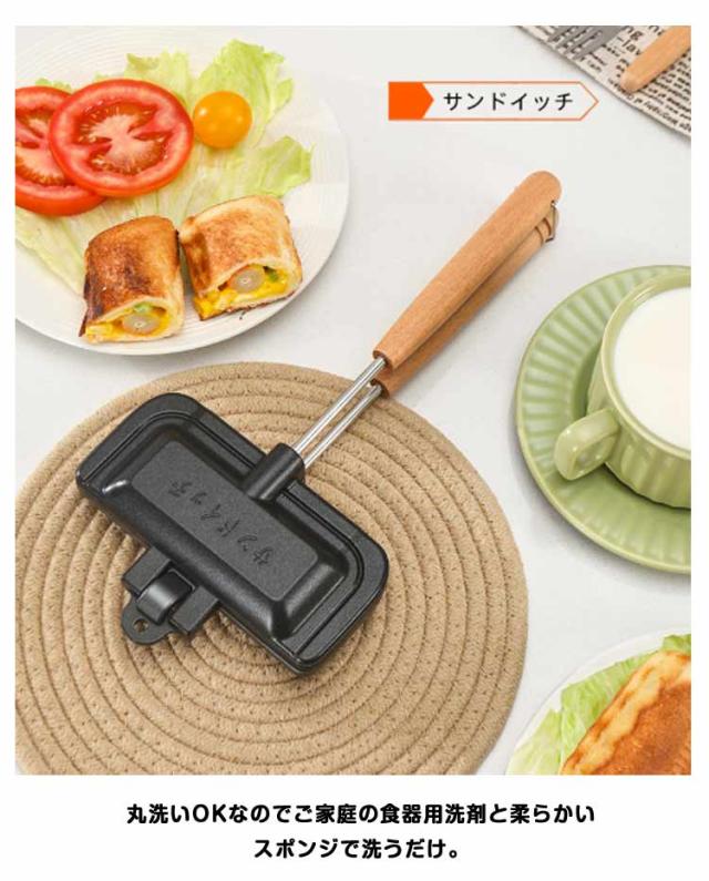 フッ素加工 取っ手が取れる 両面焼きフライパン ホットサンドメーカー 木製ハンドル 一人用 軽量 直火 お手入れ簡単 丸洗い 上下分離型 キャンプ 焦げ付きにくい 持ち運び アウトドア ホットサンドメーカー 家庭用