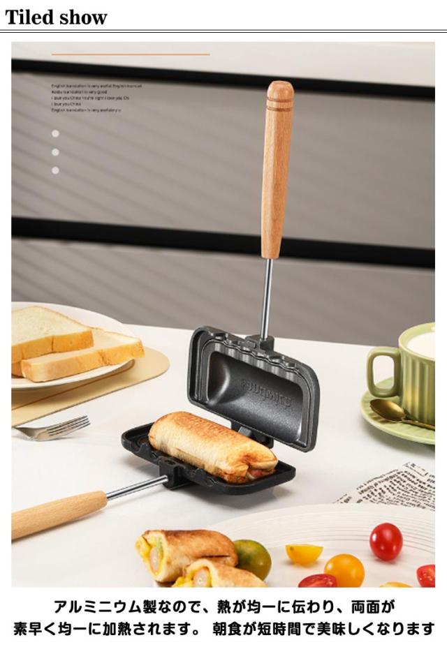 | ホットサンドメーカー 直火対応 両面焼きフライパン アルミニウム製なので、熱が均一に伝わり、両面が素早く均一に加熱されます。 朝食が短時間で美味しくなります。 フッ素加工を施し、焦げつきにくく、汚れも落ちやすくいたしました。 本体は2つのフライパンで構成されており、上下が分離可能です。 ご家庭だけでなくキャンプなどのアウトドアや様々なシーンでご使用可能です。コンパクトで軽量なので、これからの季節、BBQ・海などのレジャーまたは、非常時の調理器具として最適です! 丸洗いOKなのでご家庭の食器用洗剤と柔らかいスポンジで洗うだけ。 | |
