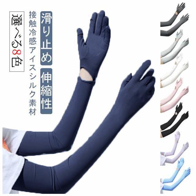 滑り止め アームカバー 通気性 手首開口 アイスシルク アームカバー 手袋 UV 一体型 UV 夏用 接触冷感 スマホ操作 日焼け止め UVカット 伸縮性 指先まで ドライブ 自転車 通勤