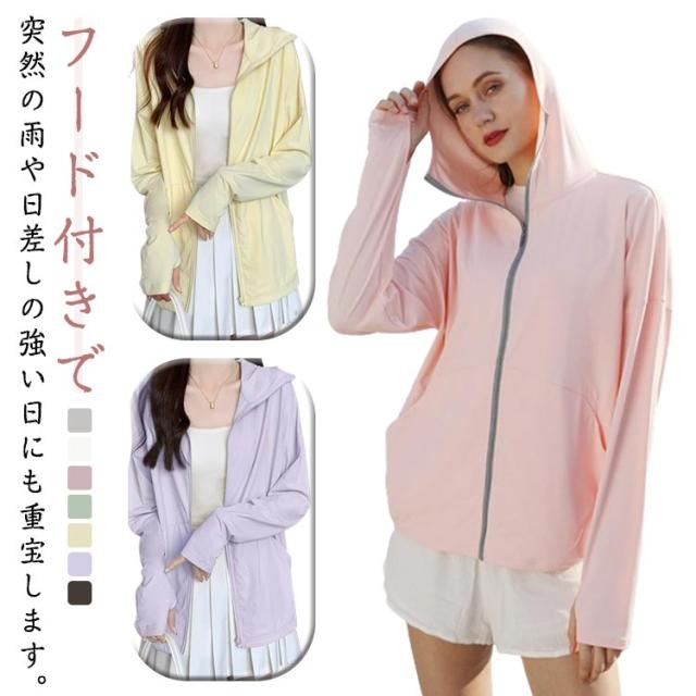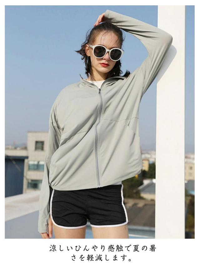 夏 サイドポケット パーカー 袖穴付き UVカット 薄手 日焼け防止 フード付き スポーツ レディース 涼しい UPF50+ UVカット 通気性 ジッパー ゆったり アウトドア 肌触り スムーズ ひんやり