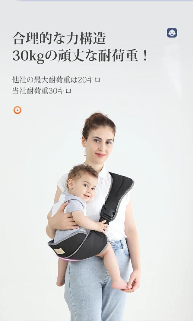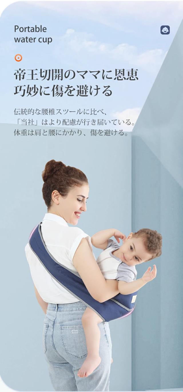 ●【強度節約設計】ベビースリング、単独で幅を広げた肩当ては赤ちゃんの重量を均一に分配し、肩、背中は均一な圧力を受け、お母さんが赤ちゃんをベビーキャリアで長時間抱っこしても腰痛になることはないです。帝王切開を経験したお母さんにも喜ばれています。 肩、背中、腰に重力を作用させ、傷を巧妙に回避する。
