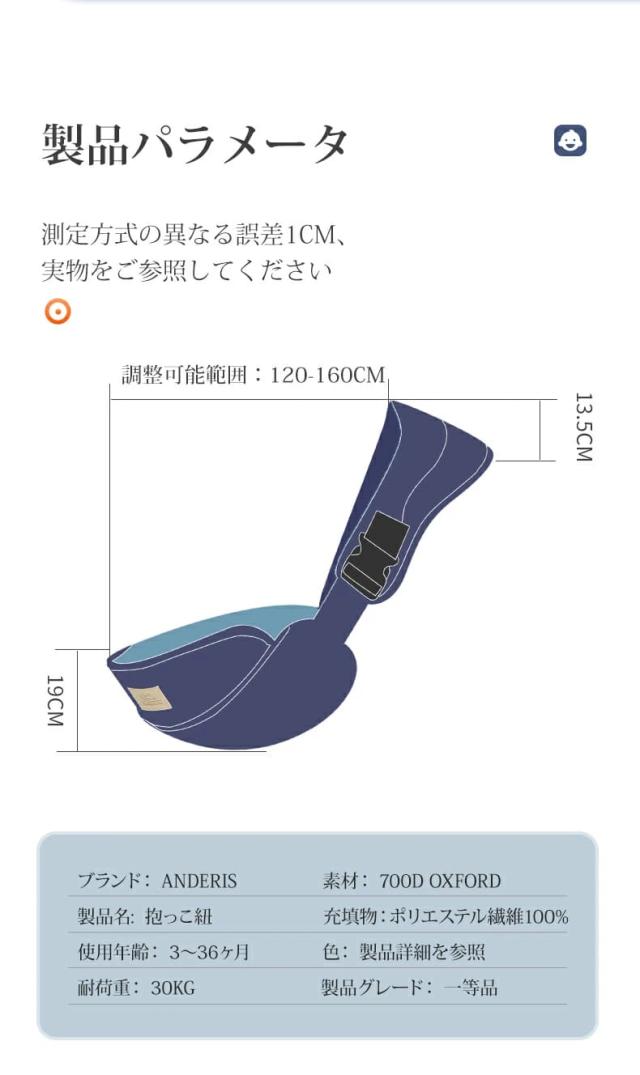 ●【荷重アップグレード】抱っこ紐を採用し、より安全性の高いベビーキャリアに生まれ変わりました。 シリコン製の滑り止めペレットをクッションに、生後8カ月から36カ月、体重30kgまでの赤ちゃんを抱っこできるように設計されています。 ベビーキャリアの重さは100gで、大人の手より少し大きいくらいの大きさに折りたたむことができます。