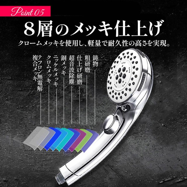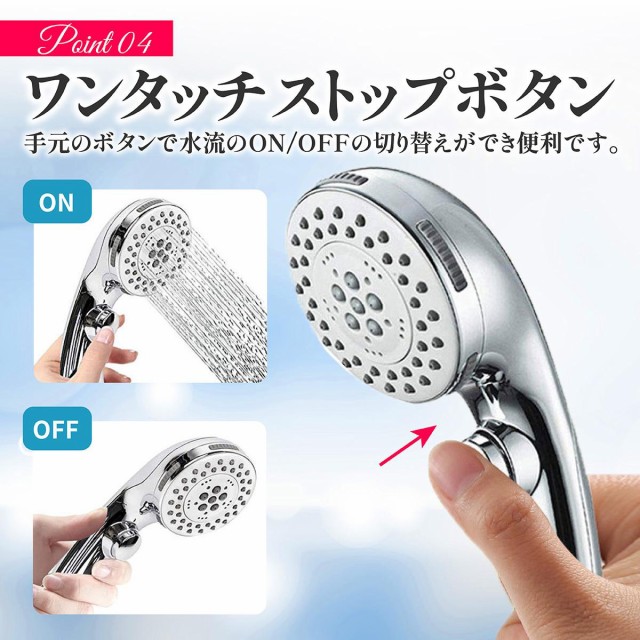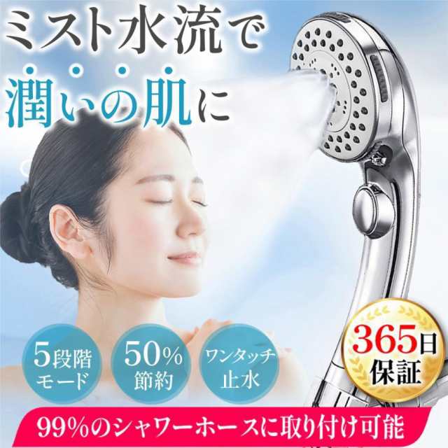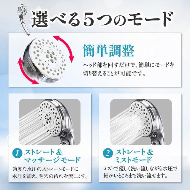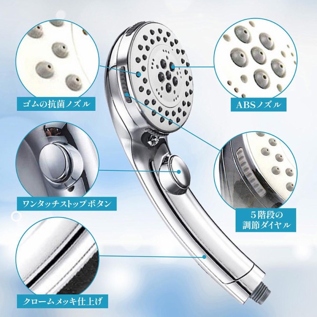 ■5段階シャワーダイヤル式切り替えスイッチ:5種類の異なる水流の変化。一時止水機能。