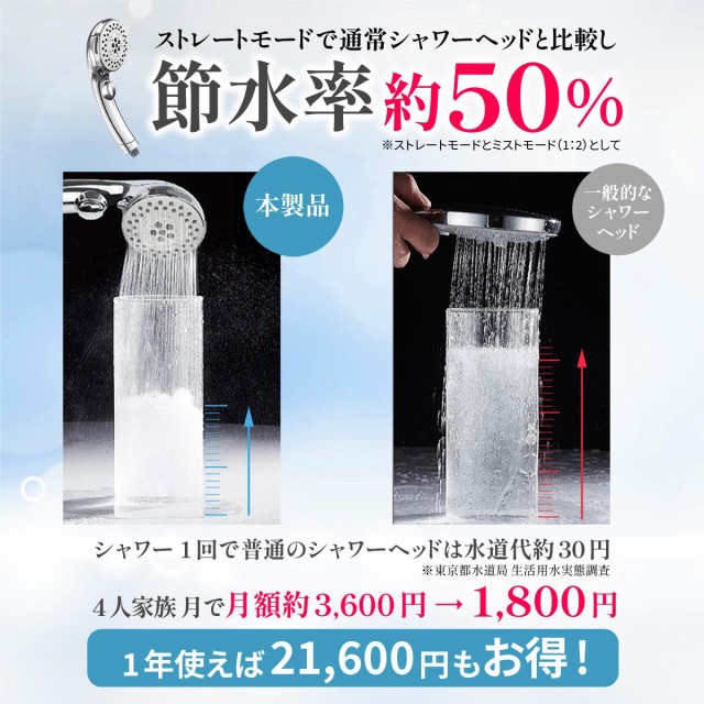 ■ストレート&マッサージモード」で節水率は約50%を実現。