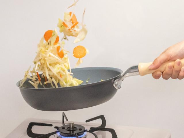 一般的な浅型フライパンよりも深いので、汁気のあるメニューやチャーハンなどの調理がしやすいのがポイントです。