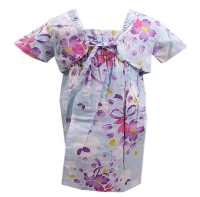 【訳有り 少難あり】 セパレート ボレロ サンドレス 2点セット 浴衣風 キッズ 薄水色地小花チューリップリボン 3〜4才(100cm) 5〜6才(110cm) 7〜8才(120cm) 子供用 女の子 女児 ワンピース