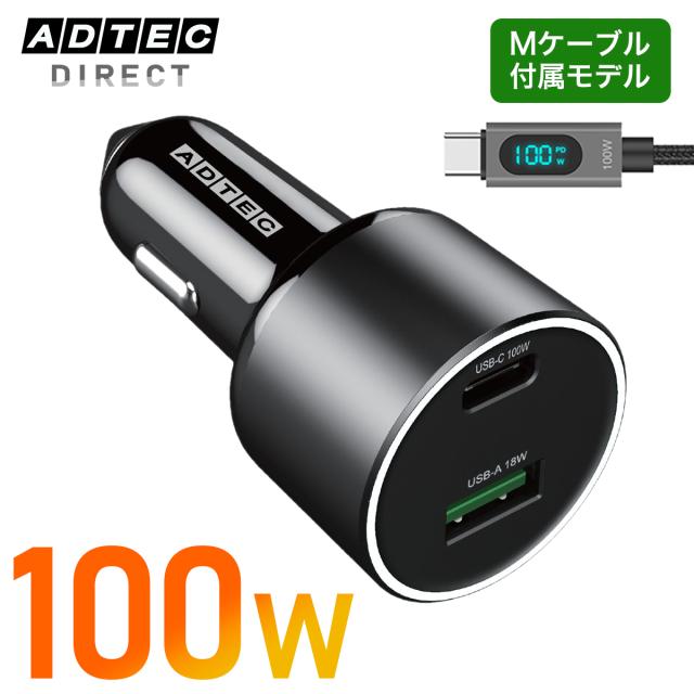 【車載PD充電器 100W】USB-C+USB-A Wモニターケーブル付属 2ポート 12V/24V対応 高出力 ノートPC・スマホ急速充電 営業車・トラック対応 日本メーカー