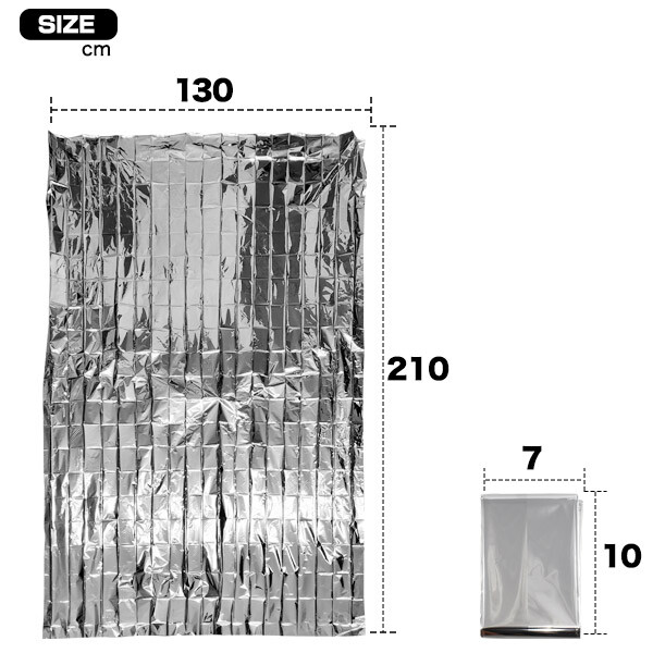 体から放射される熱を反射し、体温の低下を緩和させる保温アルミブランケットです。