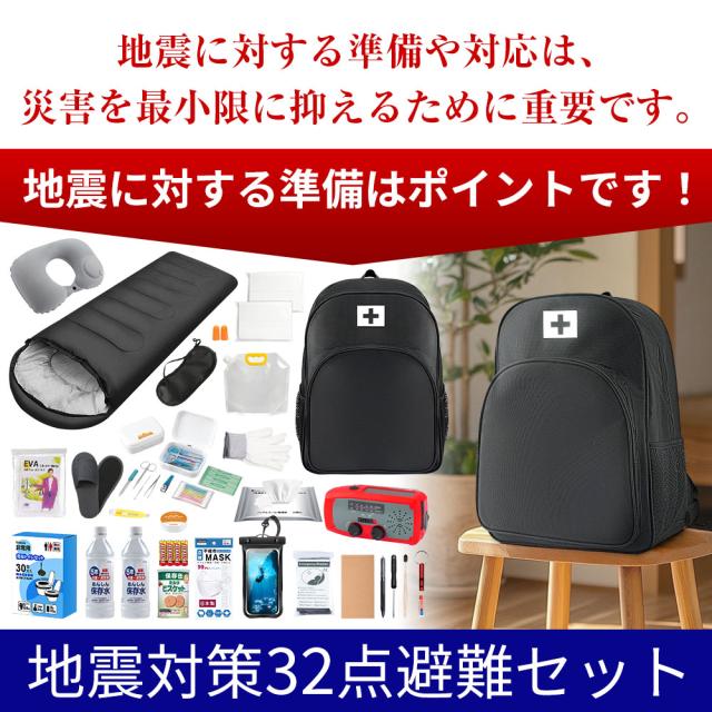 【防災備品】防災セット 地震対策 防災グッズ 32点セット 防災リュック 防災バッグ 避難 非常用持ち出し袋 一人用リュック 避難セット