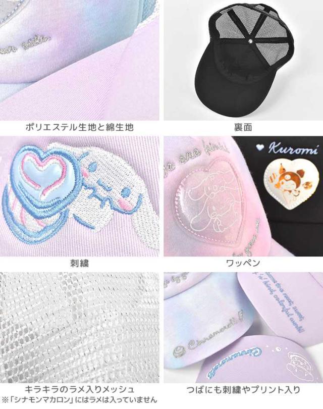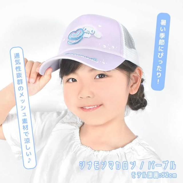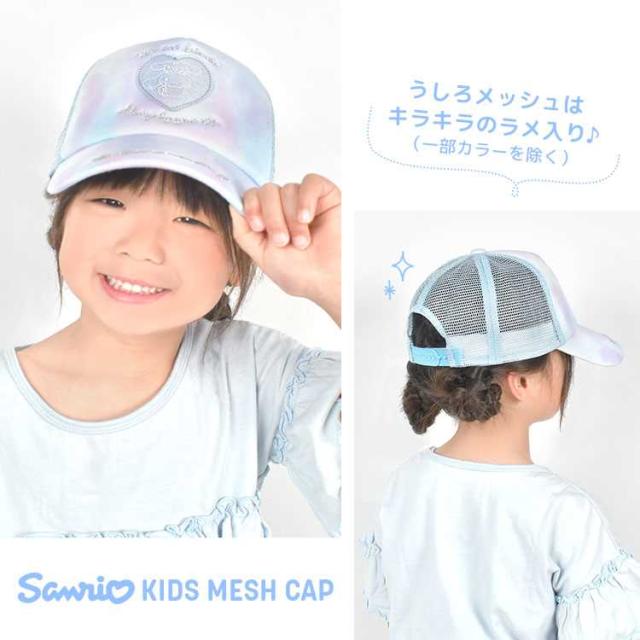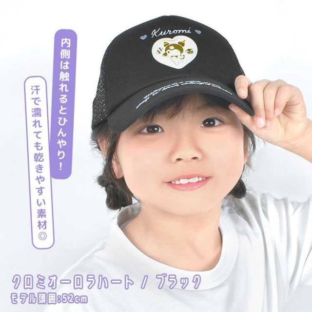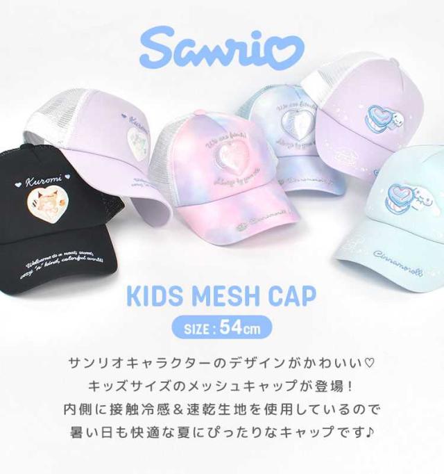 サンリオ 帽子 キッズ 女の子 メッシュ キャップ 子供 女子 小学生 かわいい 接触冷感 速乾 ジュニア 54cm 夏 涼しい sanrio キャラクター グッズ シナモロール クロミ 可愛い 紫 水色 黒 サイズ調整 こども 小学校 低学年 中学年 熱中症 紫外線対策 暑さ対策 キッズキャップ