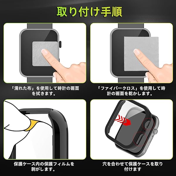 [優れたPC素材] 耐衝撃性を持つPC+強化ガラスで作られ、HD硬度9H強化ガラススクリーンプロテクター付きカバーは、Watch を傷、ほこり、衝撃から完全に保護します。日常生活での油汚れや傷を減らすことができます。無臭、変形なし、長期使用しても変形や黄ばみはしません。
