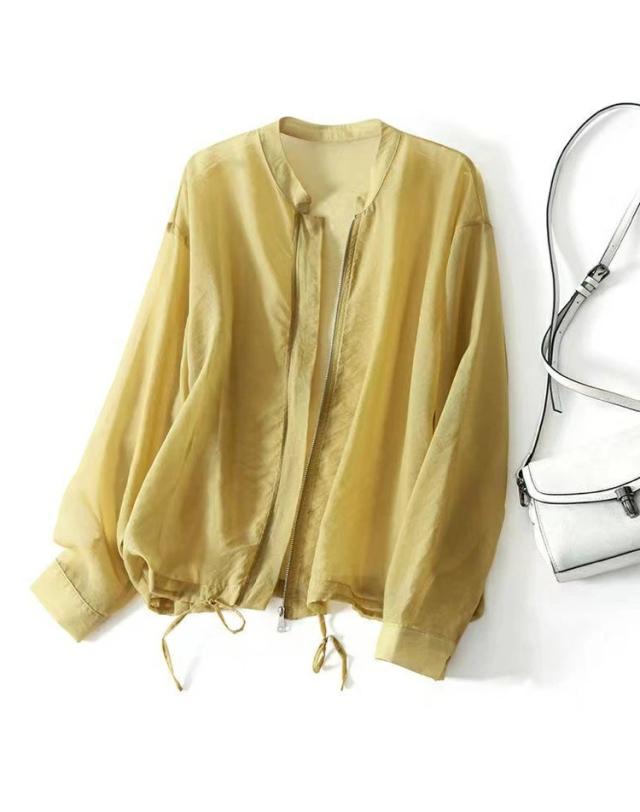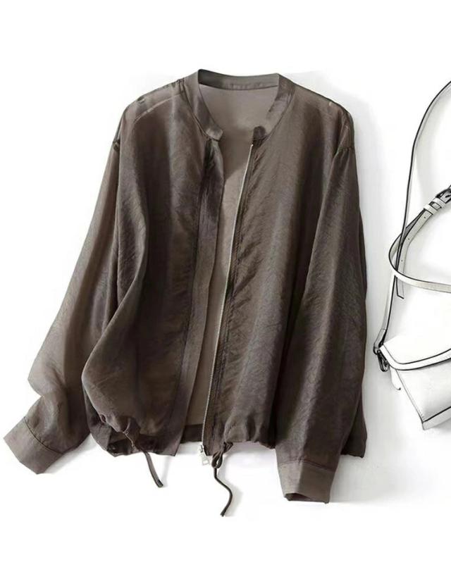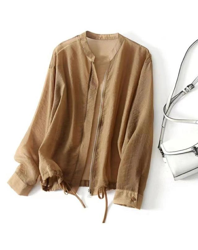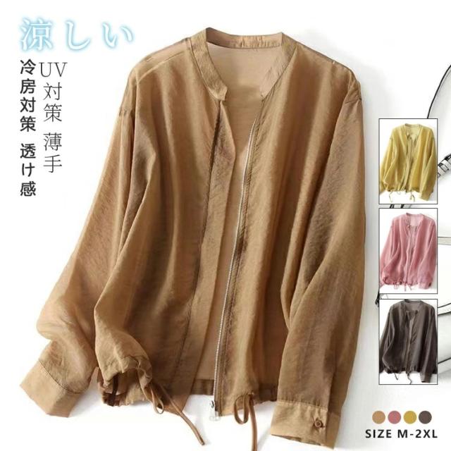 カーディガン レディース シアージャケット トップス 長袖 ブルゾン ノーカラー シアーカーデ 春 夏 UV対策 羽織り 冷房対策 涼しい 無地 ライトアウター きれいめ 上品 サマーカーディガン おしゃれ オフィス フォーマル