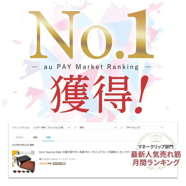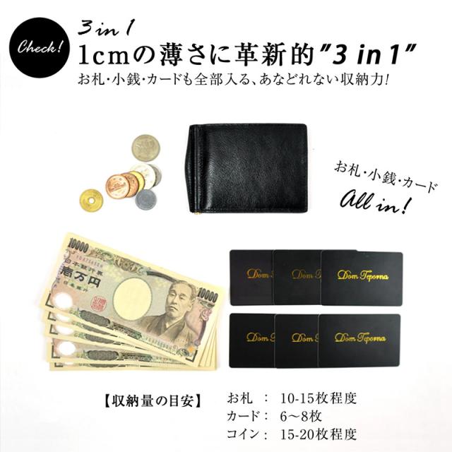 【限定1,000円OFFクーポン】【3,480円→2,480円】\マネークリップ月間ランキング1位/Dom Teporna Italy 小銭が見やすい本革マネークリップ カード収納6つ カードケース メンズ イタリアンレザー 二つ折り 折りたたみ 札ばさみ ミニ 財布 薄型 薄い コンパクト 軽い 軽量