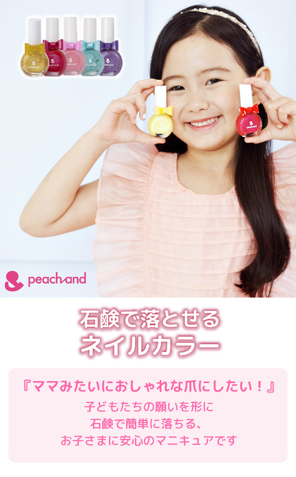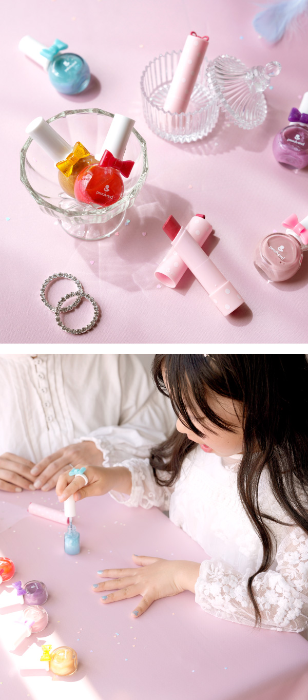 Peachand とは、二人娘のママである化粧品専門家が開発した、子供と家族みんなで安心して使えるキッズコスメブランド。安全性はもちろん、子供たちの好奇心をくすぐるデザインが魅力です。