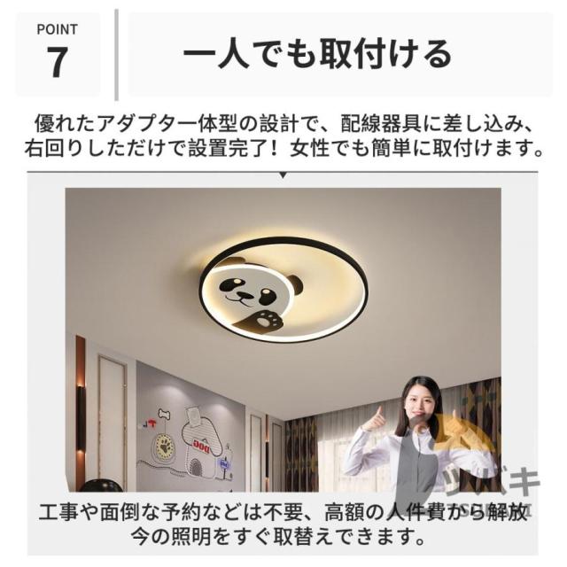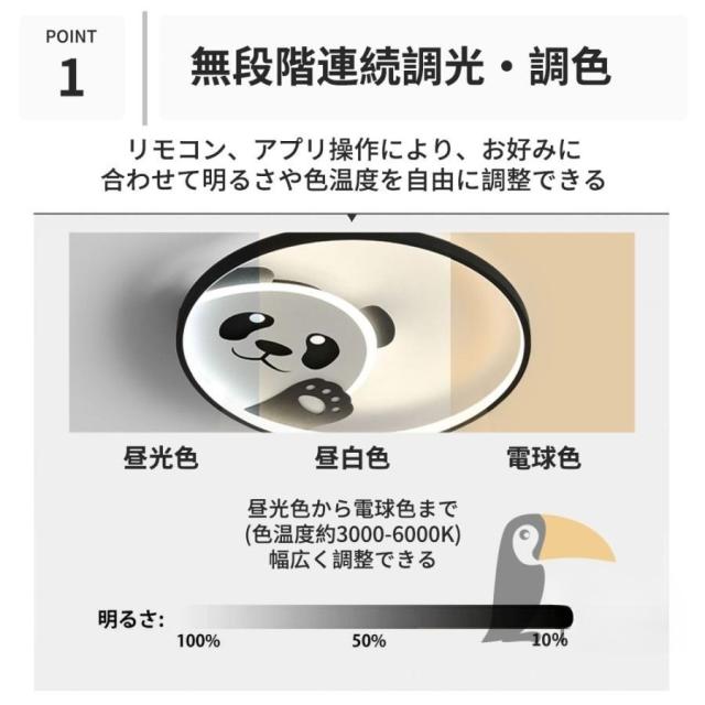 シーリングライト LED パンダ おしゃれ 丸形 6畳 8畳 10畳 北欧 シンプル 調光調色 工事不要 リモコン付き 明るい インテリア 子供部屋 led照明 天井照明