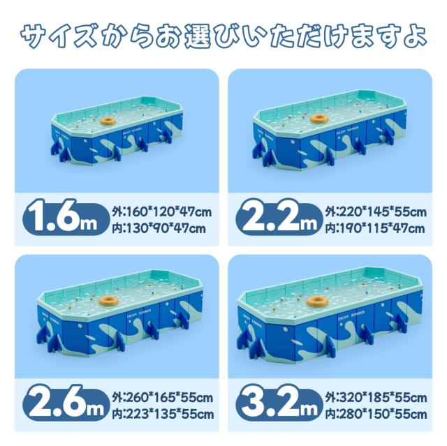 大型 プール 折り畳み式 プール 子供用 ビニールプール 1.6-2.6m 水遊び フレームプール 加厚プール 家庭用プール 家庭用 大人用 キッズ ベビー 折りたたみ 収納簡単 設置簡単 庭 室内 室外 アウトドア 空気漏れ無し