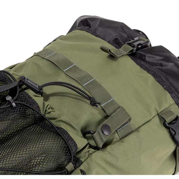 本体生地にリサイクルナイロン「MIPAN regen」を使用したロールトップバックパック。 容量は35Lでロールトップを全て開放する事で容量を増やす事が可能です。 フロントポケット前にバンブーストラップを配置しており、上着などをかける事ができます。 キャンプやトレッキングのみならず、タウンユースにも対応可能です。 | ||||||