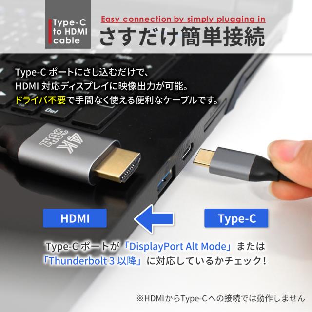 仕様:Type-C = HDMI 4K高画質(30Hz)