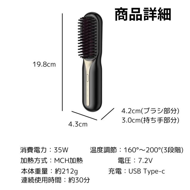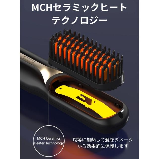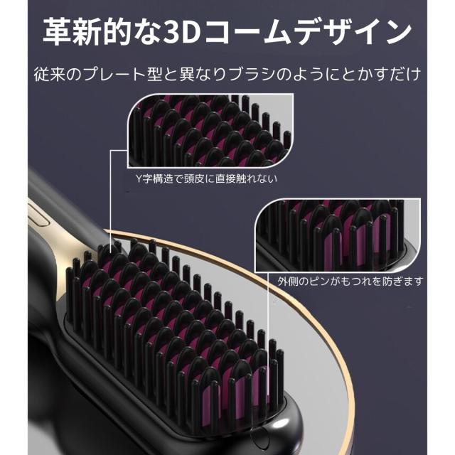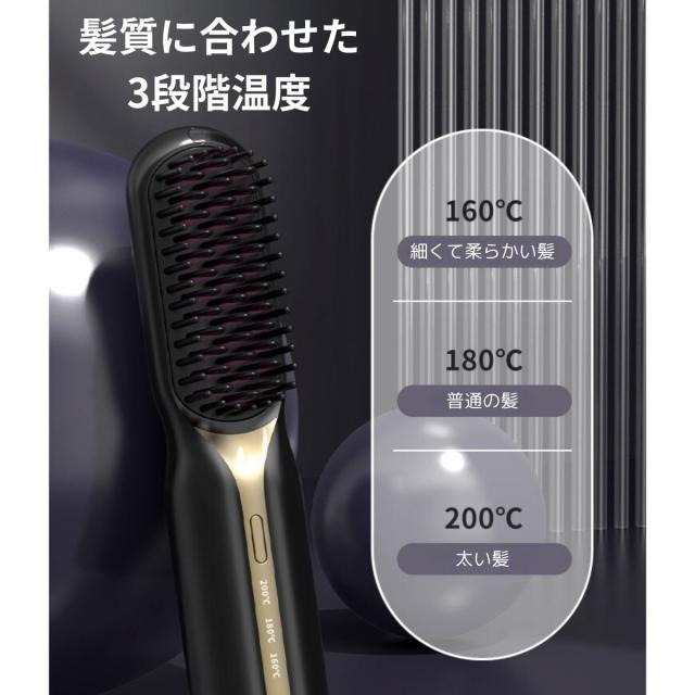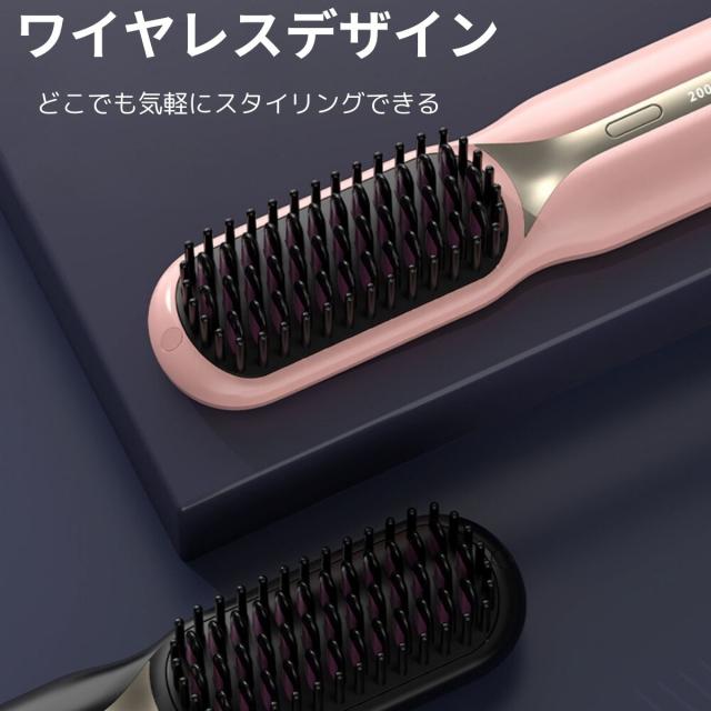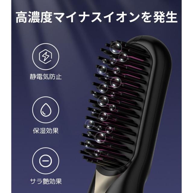ヘアアイロンブラシ コードレス ヘアアイロン 温度調節 痛まない 使い方 マイナスイオン 前髪 ショート 外巻き 内巻き 消し忘れ 防止機能 自動オフ