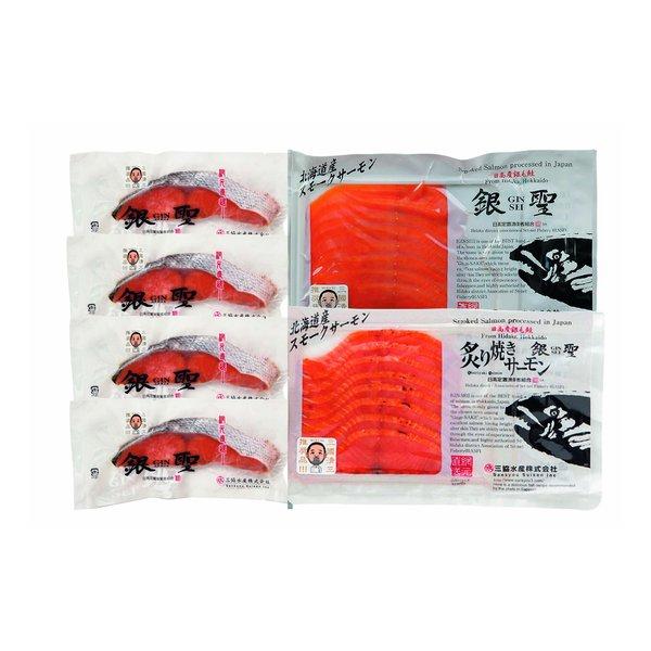 三協水産三國推奨 漁吉丸の銀聖切身&スモークサーモン炙り焼きセット 3種/6パック入り ZOA214381866(2646653)代引不可