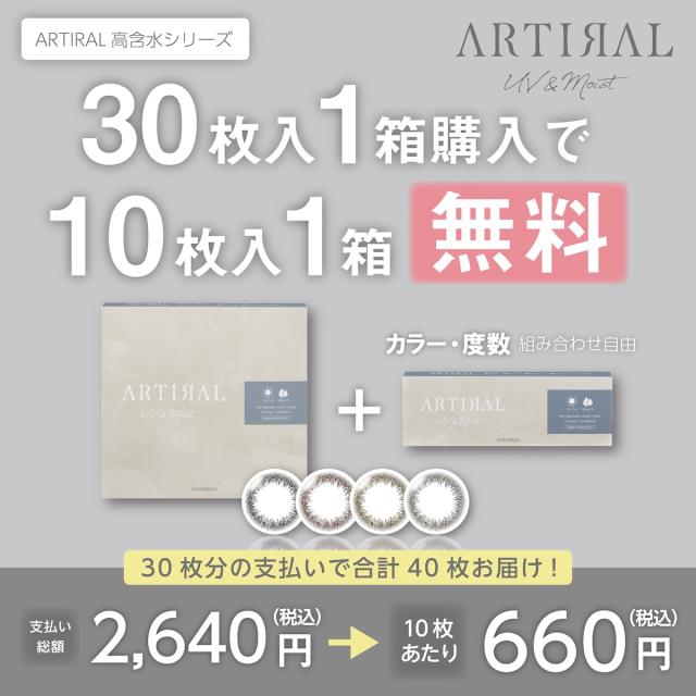 【1箱ご購入で10枚入1箱無料】カラコン アーティラル UVM 58 ワンデー 1箱30枚 度あり 度なし 1日使い捨て 高含水 58% カラーコンタクト ARTIRAL UV MOIST 1day