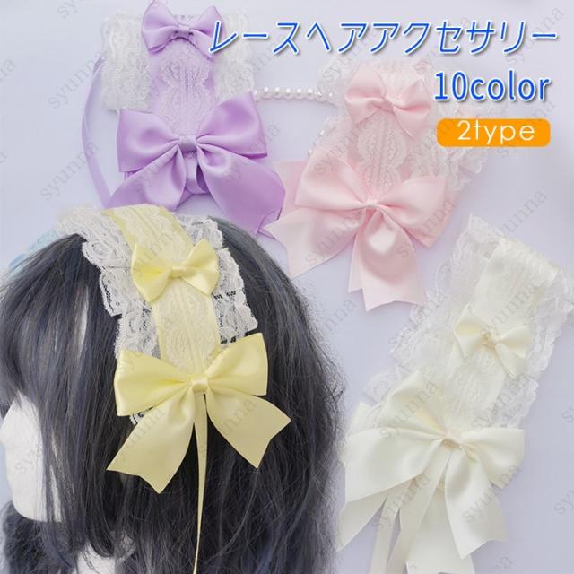 ロリータ ヘッドドレス 日本国内 当日発送 10color ヘアバンド 髪飾り リボン ゴスロリ 可愛い ヘアアクセサリー Lolita ロリータファッション #h51
