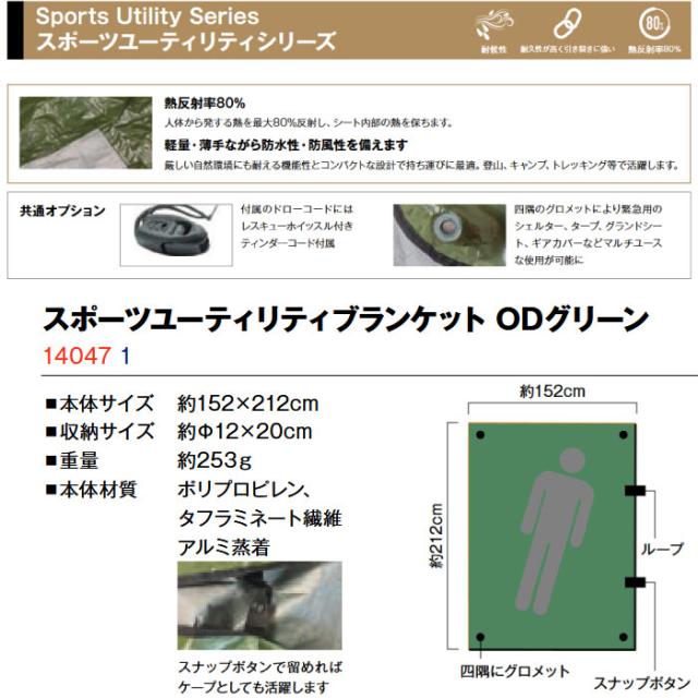 スター商事 メンズ レディース エスオーエル SOL スポーツユーティリティブランケット 登山用品 防災用品 エマージェンシーシート サバイバルアイテム グリーン 緑 送料無料 14047