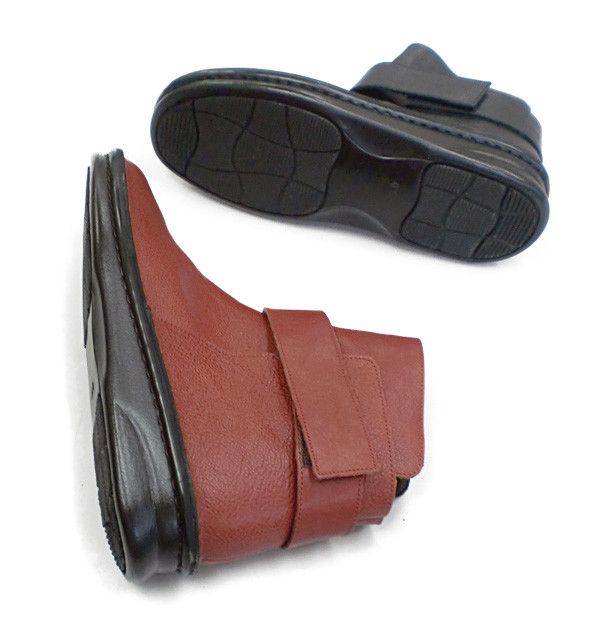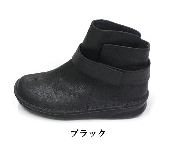 | ベルトはベルクロ仕様で調整可能 履き口が広がるスリッポンタイプのブーツ コンフォートシューズ |