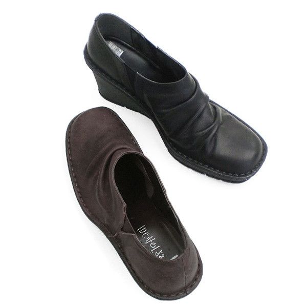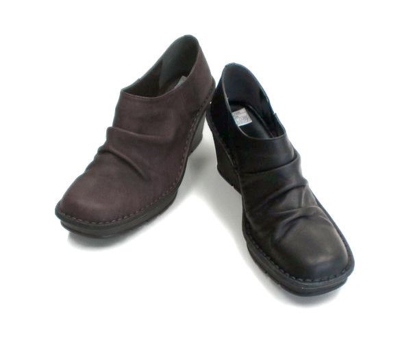 | 秋冬の 新型ソール! 従来のステッチダウンの厚底タイプウェッジソールなので安定感のある履き心地です。 サイドにゴムが使用されていて脱ぎ履きも簡単 オグリークトゥのクシュクシュパンプス 安心のMADE IN JAPAN。 コンフォートシューズ |