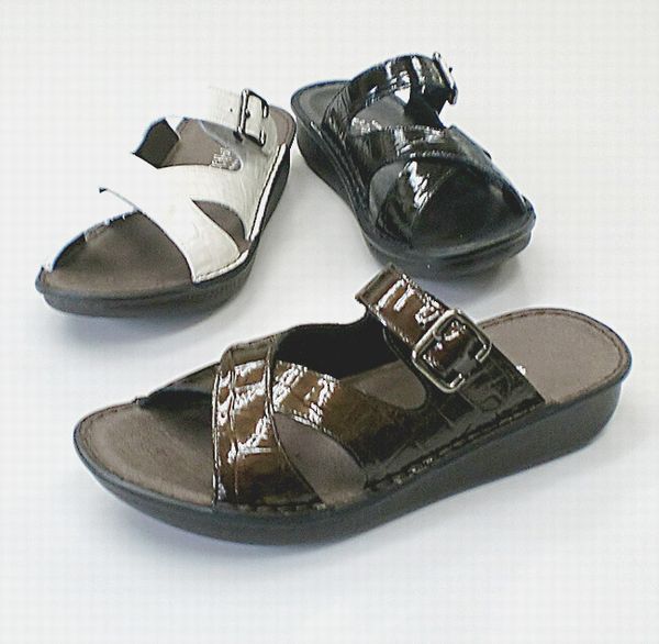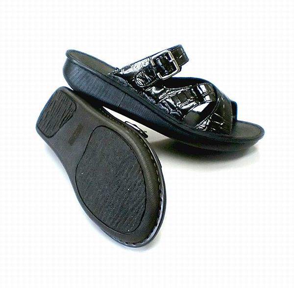 | 天然皮革クロコエナメル加工素材でのミュール 爪先のかえりよい船底タイプの楽ーコンフォートで、足の負担を和らげ、歩行にも最適♪ め コンフォートシューズ |