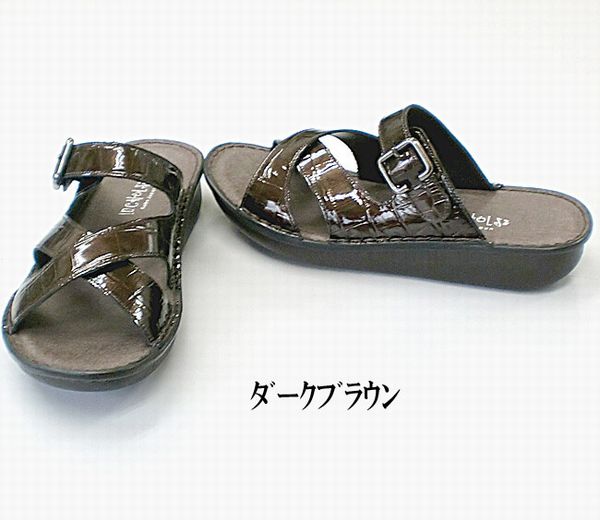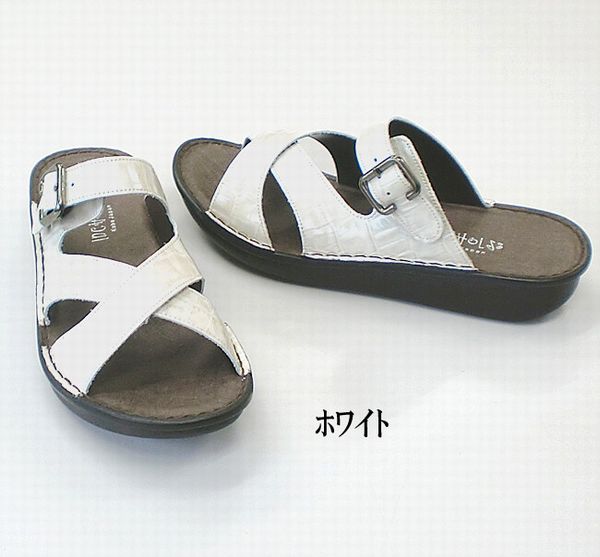 サンダル レディースシューズ レディースファッション 靴 フラット クロスベルト ミュール S M L LL 天然皮革 クロコエナメル加工素材 【送料無料】