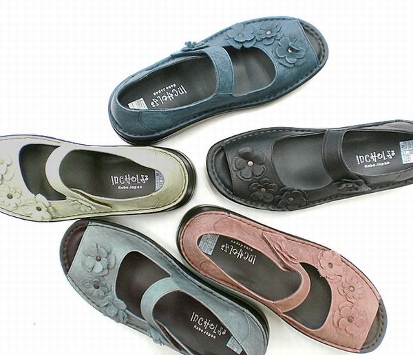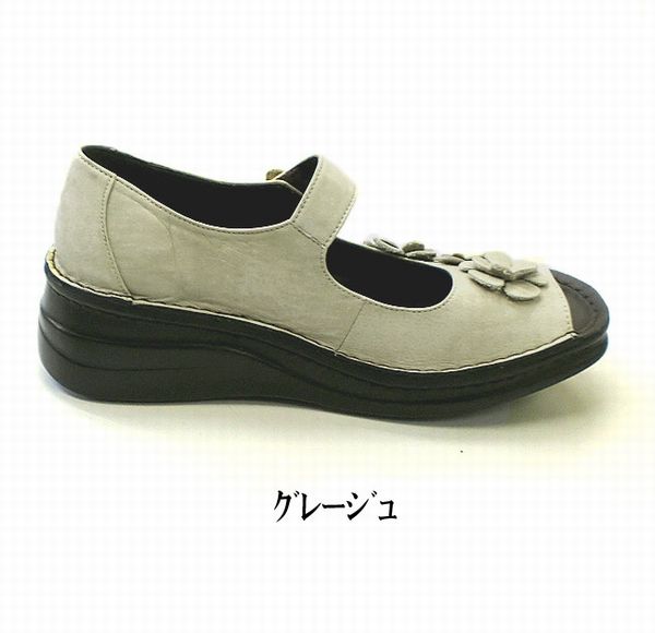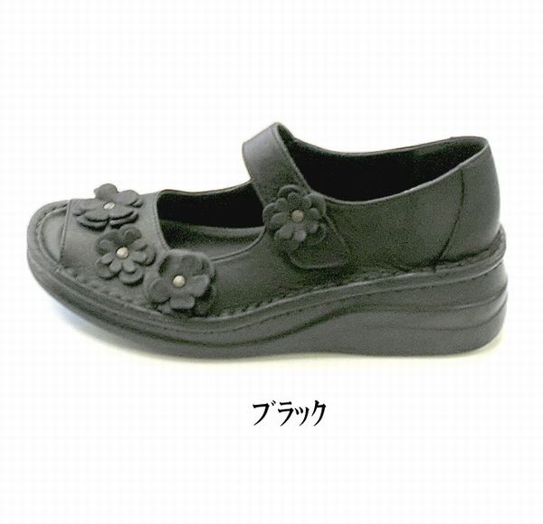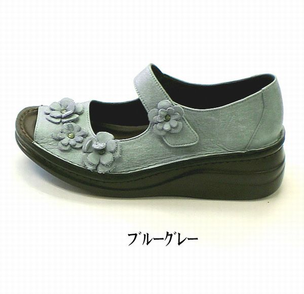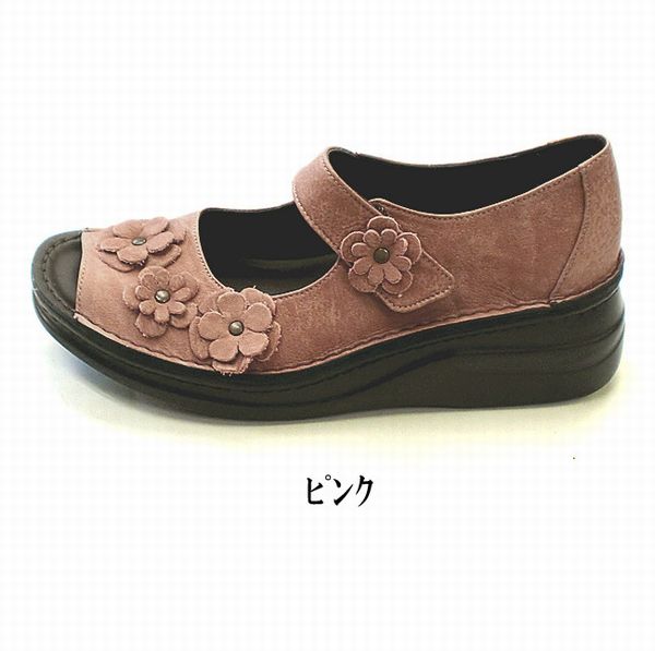 レディースシューズ レディースファッション 靴 本革 フラワーモチーフ オープントゥー シューズ 花飾り 可愛い カジュアル パンプス 【送料無料】