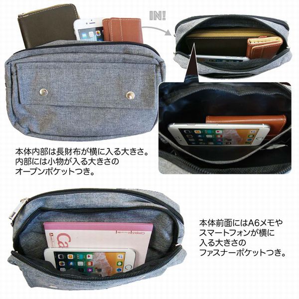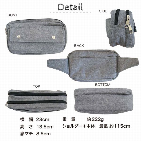 | ポリエステルキャンバス生地がおしゃれなボディバッグです。 長財布が横に入る大きさで、ちょっとしたお出かけにぴったり。 |