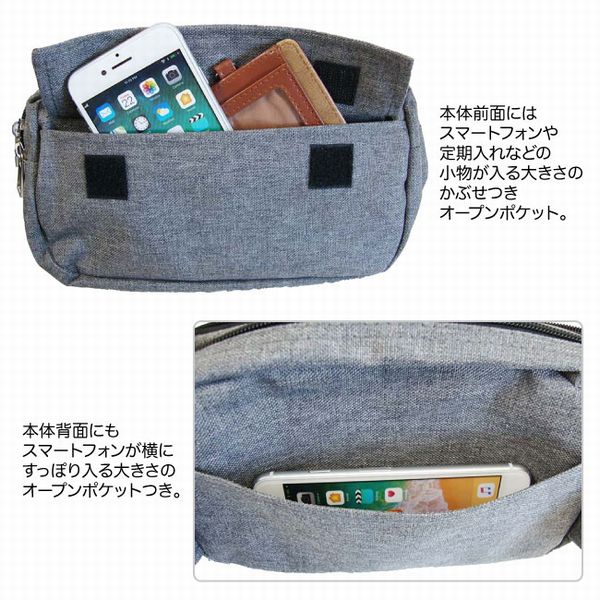 ポリエステルキャンバス生地がおしゃれなボディバッグです。