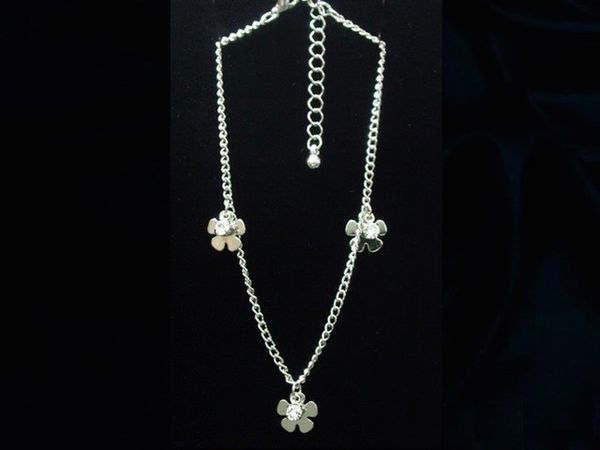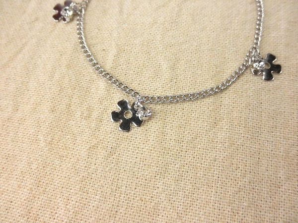可愛いフォルムのフラワーモチーフとラインストーンが下がったポップなアンクレットです。