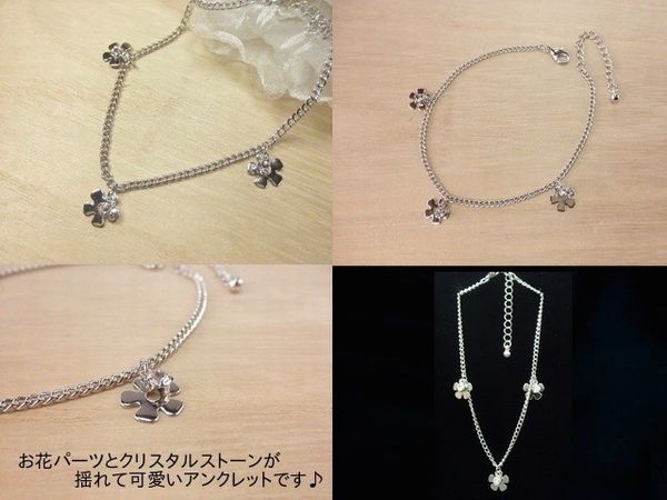 アンクレット レディースアクセサリー アクセサリー ファッション ラインストーン付き 花 可愛いフォルム フラワーモチーフ ポップ B系 【送料無料】