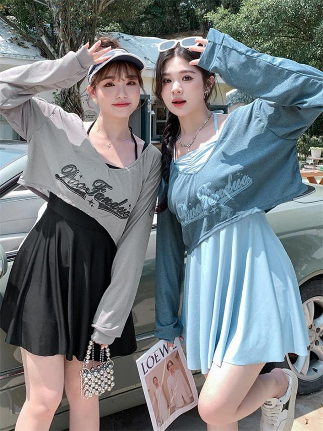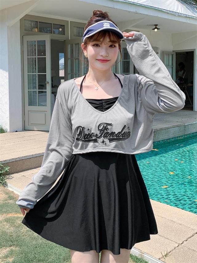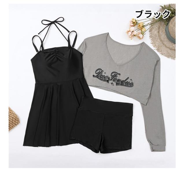 水着 レディース 大きいサイズ ワンピース 体型カバー ぽっちゃり 服みたいな 中学生 高校生 3点セット 長袖シャツ ラッシュガード ママ水着 セパレート 10代 20代 韓国 小胸 二の腕カバー 露出控えめ 女の子 30代 海 プール リゾート おしゃれ 可愛い ブルー 黒 グレー k2068d7d7x7 k2068d7