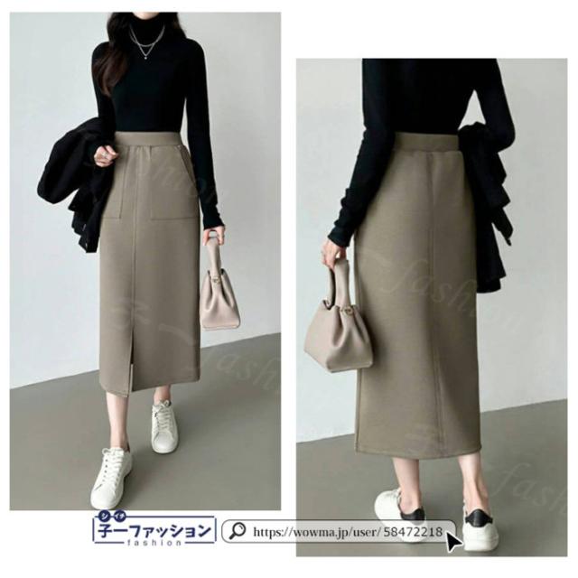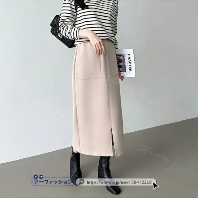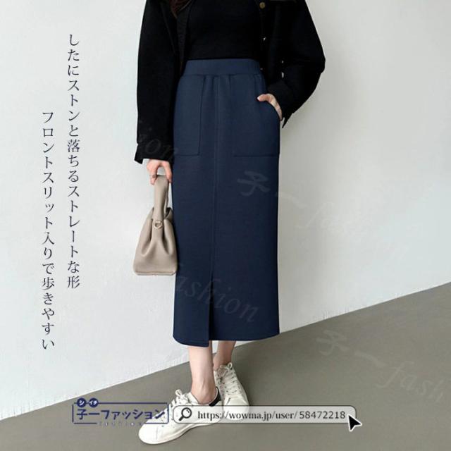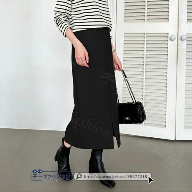 タイトスカート ロングスカート 春新作 フロントスリット ダンボールスカート スリットスカート ハイウエスト 無地 カジュアル 細見え きれいめ ミモレ丈 ロング丈 体型カバー 大人 すっきり オフィス 秋冬 バレンタイン