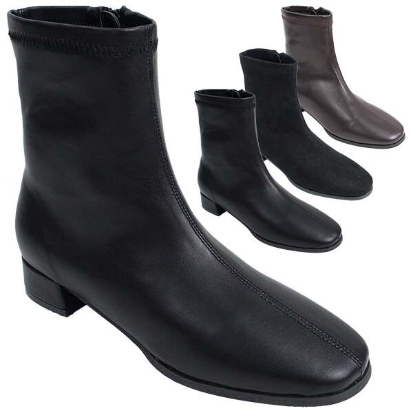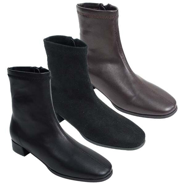 ブーツ レディースシューズ レディースファッション 靴 スクエアトゥ ストレッチ ショートブーツ ローヒール 履き口柔らか 歩きやすい 【送料無料】